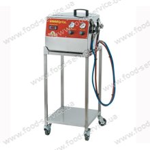 Принцип дії: продукт під тиском подається з обігріваючого теплим повітрям контейнера в пістолет. Для досягнення різних видів декорування застосовується роздільне регулювання тиску продукту і тиску повітря за допомогою двох ручок на панелі управління. Підключається до компресора.