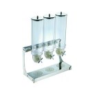 Диспенсер потрійний для мюслі Bartscher 500379 використовується для роздавання сухих сніданків і подає потрібну кількість мюслі, кукурудзяних пластівців, злаків, горіхів та подібних продуктів. Корпус виготовлений з лакованої сталі, контейнер з пластику, стійкого до подряпин.   ..