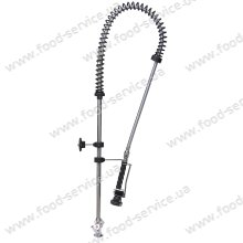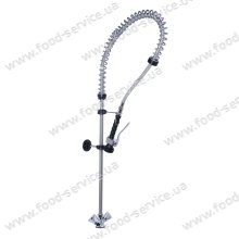 Душ миючий P0101020127 використовується для попереднього ополіскування та очищення посуду від решток їжі перед завантаженням у посудомийну машину, а також для миття коренеплодів, овочів та фруктів в закладах громадського харчування.   Ручний душ з гнучким шлангом може повертатися пра..