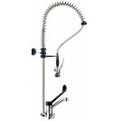 Змішувач з душуючим пристроєм з виливом застосовується для установки на мийні ванни в кафе, барах, ресторанах, цехах та інших місцях для миття посуду, інвентарю та продуктів. Має пневмо амортизатор, який вмикає воду при робочому положенні лійки, а при відпуску моментально вимикає її, що забезпечує економію води та спрощує роботу. Виготовлений з хромованої латуні Гнучкий шланг в обплетенні з нержавіючої пружини Вилив Отвір в мийній ванні 30,5мм ...