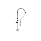 Змішувач з душуючим пристроєм застосовується для установки на мийні ванни в кафе, барах, ресторанах, цехах та інших місцях для миття посуду, інвентарю та продуктів. Виготовлений з хромованої латуні Гнучкий шланг в обплетенні з нержавіючої пружині ..