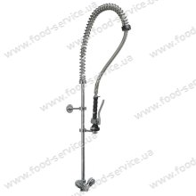 Душ миючий P0101020127 використовується для попереднього ополіскування та очищення посуду від решток їжі перед завантаженням у посудомийну машину, а також для миття коренеплодів, овочів та фруктів в закладах громадського харчування.   Ручний душ з гнучким шлангом може повертатися пра..