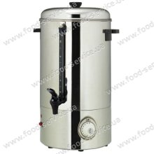 Кип'ятильник електричний GoodFood WB30DW з кришкою з захистом від відкривання та індикатором рівня заповнення води. Корпус та кришка виготовлені з нержавіючої сталі.   Об'єм 25 л. Подвійна стінка. Наповнюється водою вручну. Вистачає на 155-160 чашок. Автоматичний ..
