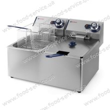 Корпус виготовлений з нержавіючої сталі.   Об'єм: 8+8 л. Габарити кошиків: 190х235х140 мм. Температура +60...+200 °C. З'ємні штамповані ванни. Бічні ручки для перенесення. ..