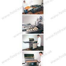 Для дріжджових виробів машини комплектуються вбудованими шафами. Расстояться тестові заготовки перевантажуються у фритюрницю, де за заданою програмою відбувається обжарка виробів при неодноразовому їх перевороті.
