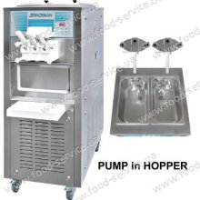 Настільний апарат для виробництва м'якого морозива на 2 + 1 вид, має зручне і просте електронне управління, що підвищує надійність і зручність використання, і високоточний термостат для постійного підтримування заданої температури морозива на виході з робочого циліндра. Корпус, ємність для попереднього охолодження, робочий циліндр виготовлені з нержавіючої сталі, що дозволяє прискорити і спростити процес миття та обробки поверхні.