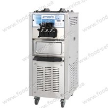 Настільний апарат для виробництва м'якого морозива на 2 + 1 вид, має зручне і просте електронне управління, що підвищує надійність і зручність використання, і високоточний термостат для постійного підтримування заданої температури морозива на виході з робочого циліндра. Корпус, ємність для попереднього охолодження, робочий циліндр виготовлені з нержавіючої сталі, що дозволяє прискорити і спростити процес миття та обробки поверхні.