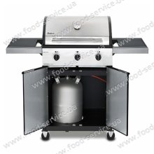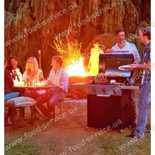 Вбудовані колеса допоможуть без праці змінювати місце розташування Вашого гриля на терасі, балконі або літньому майданчику. Газовий балон 12л / 5 кг або 27л / 11кг компактно розміщуються в нижній шафі.