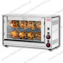 Гриль електричний для приготуваня курей з двома спицями довжиною 720мм, розрахований на 8 курчат з максимальною вагою тушки 1,5кг та максимальним діаметром тушки 180мм.
