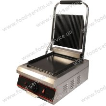 Грилі контактні призначені для смаження м'яса, сосисок, бутербродів, риби, а також яєчні, омлетів, млинців та ін:   • терморегулятор дозволяє встановлювати температуру від 50 до 300 °С;   • нагрів здійснюється одночасно зверху і знизу; • корпус виконаний з нержавіючої сталі;   • робочі поверхні чавунні з керамічним покриттям;   • ручки виконані з термостійкого матеріалу; • знімний піддон для збору зайвого жиру; • тиск верхньої робочої поверхні регулюється притискною пружиною, що забезпечує адаптацію до різної товщини продукту; • Світловий індикатор нагріву •  Індикатор мережі ON/OFF