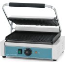 Гриль контактний GoodFood ECG11 BLUE однопостовий з одним регулятором потужності, широкою плитою та пружиною для фіксування верхньої плити у будь-якому положенні.   Верхня і нижня плити з ребристою поверхнею. Температура від 50 до 300°С. Потужність 2,2кВт. Розміри ве..