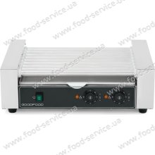 Виробник: GoodFood, Китай / Напруга, В: 220 / Потужність, кВт: 1.35 / Кількість роликів, шт: 9 / Завантаження сосисок, шт: 10 - 20 / Захисне скло: опція / Вага, кг: 10 / Габаритні розміри (ДхШхВ), мм: 580x405x178