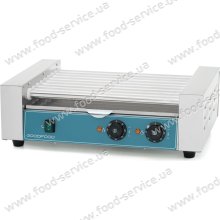 Гриль роликовий GoodFood HDRG7 BLUE для сосисок хот-дог з 2-ма регуляторами потужності (3 ролики + 4 ролики).   7 роликів виконані з харчової нержавіючої сталі завдовжки 450мм. Температура від 50 до 300°С. Електродвигун має металеві шестерні та витримує інтен..
