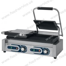 Корпус виготовлений з нержавіючої сталі, робочі поверхні з чавуну.   Верхня плита фіксується в будь-якому становищі. З'ємний жирозбірник.   Потужність 1.8+1.8 кВт. ..