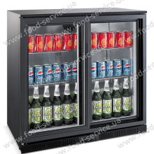 Корпус виготовлений з нержавіючої сталі.   Загальний об'єм 208 л. 4 полиці. Освітлення: LED. Потужність: 0,133 кВт. Динамічна система охолодження. Температура від 0 до +8 °C. Автоматичні розпашні двері. Чорний колір. Цифровий термостат. Загартоване..