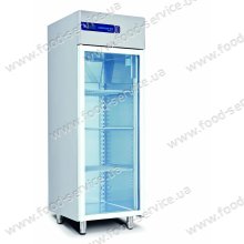 Холодильна шафа Forcar G-ER600 з скляними дверима. Корпус виготовлений з фарбованого металу.   Динамічне охолодження. 3 полиці 630x480мм + 1 полиця 630х290мм з пластиковим покриттям. Об'єм 570л. Температура від +2 до +8˚С (при температурі навколишнього середовища до +..