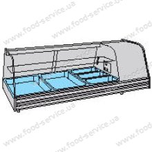 Виробник: COLDMASTER, Италия / Напруга, В: 220 / Потужність, кВт: 0.23 / Характеристики: на 3 гастроємності / Тип скла: гнуте / Тип вітрини: під гастроємності / Вага, кг: 43.00 / Габаритні розміри (ДхШхВ), мм: 1330x603x255