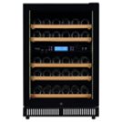 Шафа холодильна для вина Tecfrigo Sommelier 43/1 з дверима з склопакетами з димчастого скла з захистом від УФ-променів, алюмінієвими кнопками, стандартним внутрішнім освітленням LED синім, цифровим дисплеєм, електронним контролем температури, дерев'яними висувними полицями з бука 4 шт 498x442 мм ..