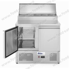 Холодильний заготівельний стіл з вбудованим випарником Hendi 232781. Холодильні столи - дуже популярний вид холодильних меблів в сфері громадського харчування і торгових мережах. Холодильний стіл може використовуватися, як окремий елемент холодильного обладнання, так і вбудований в цільну технологічну лінію, для тимчасового зберігання і обробки продуктів харчування, десертів, коктейлів. Може встановлюватися в ресторанах, кафе, барах, великих підприємствах, виробничих цехах і т.д. Незаперечною перевагою холодильного столу, є те, що він одночасно може виконувати дві функції: і столу і холодильника. Це в свою чергу суттєво економить робочу площу на кухні.