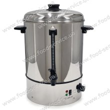 Кип'ятильник електричний GoodFood WB30S з кришкою з захистом від відкривання та індикатором рівня заповнення води. Корпус виготовлений з нержавіючої сталі.   Загальний об'єм 30 л. Корисний об'єм 28 л. Одинарна стінка завтовшки 0,5 мм. Наповнюється водою вручну. Вистачає на 150-160 чашок. Автоматичний термостат. Регулювання температури води від 30 до 100 °С. Захист від перепаду напруги. Стійка основа. Потужність ТЕНу 2,5 кВт. Напруга 220В/50Гц. ...