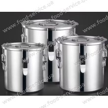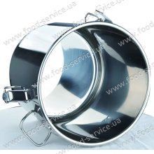 Контейнер призначений для транспортування харчових продуктів (супи, бульйони, каші, компоти і т.п.). Застосовується для виїзної торгівлі, кейтерингу, для організації фуршетів на відкритому повітрі, ярмарок. Кришка має спеціальний ущільнювач і завдяки міцним затискачам щільно прилягає до ємності. Така конструкція гарантує, що продукт не проллється під час перевезення. Даний контейнер не є термосом, а служить тільки для транспортування їжі.   ОСОБЛИВОСТІ: корпус - нержавіюча сталь; кришка щільно закривається на три затискачі; сендвіч дно, завдяки якому можна використовувати на плиті для підігріву; без великої ручки для переносу - тільки невеликі ручки з двох сторін та на кришці. ...