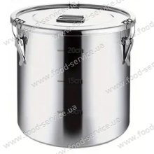 Контейнер призначений для транспортування харчових продуктів (супи, бульйони, каші, компоти і т.п.). Застосовується для виїзної торгівлі, кейтерингу, для організації фуршетів на відкритому повітрі, ярмарок. Кришка має спеціальний ущільнювач і завдяки міцним затискачам щільно прилягає до ємності. Така конструкція гарантує, що продукт не проллється під час перевезення. Даний контейнер не є термосом, а служить тільки для транспортування їжі.   ОСОБЛИВОСТІ: корпус - нержавіюча сталь; кришка щільно закривається на три затискачі; зручна ручка на кришці для перенесення; одинарне дно. ...