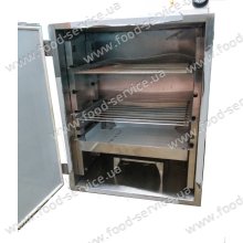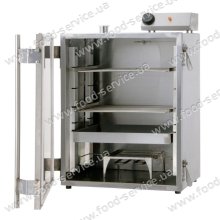 Коптильна камера призначена для гарячого копчення, запікання і приготування на грилі м'яса, риби, птиці, морепродуктів, сирів і овочів. Виготовлені коптильні з високоякісної нержавіючої сталі. Електрична коптильня призначена для виробництва продуктів гарячого копчення. Приготовлені в ній страви мають гострий, пряний, апетитний смак і запах, набувають специфічний колір копченості. Процес копчення в печі відбувається наступним чином: в дров'яної відсік закладається задану кількість дров, завантажується продукт згідно з технологічною картою, встановлюється необхідна температура і час приготування на механічних терморегулятор і таймері. Внутрішня частина коптильні виготовлена з товстостінної нержавіючої сталі. Дверцята коптильні відкривається на 180 градусів. Відстань між знімними полицями - 200мм. Споживчі характеристики коптильні: - зроблена з нержавіючої сталі - на панелі управління розділені таймер і терморегулятор - температурний режим + 30 - + 120С, механічний терморегулятор - механічний таймер - герметизація камери коптильні здійснюється за допомогою термо...