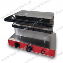 Корпус виготовлений з нержавіючої сталі. Робоча поверхня 320х180мм з антипригарним покриттям. Подається на паличці, довжина палички приблизно 17 см. Апарат оснащений таймером для контролю часу приготування.