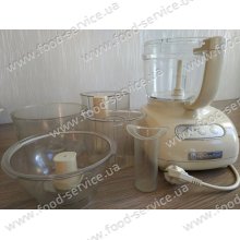 Процесор ARTISAN KFPM770Е KITCHEN AID (США), вдає із себе кутер-овочерізку (два ножі і три диска), комплектується насадкою-лопаткою для збивання яєць, насадкою-соковижималкою для цитрусових і трьома чашами 0,95л, 2,4л, 2,8л .