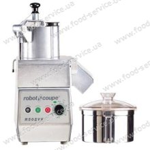 Кухонний процесор Robot-Coupe R 502 - призначений для нарізки овочів, подрібнення і перемішування продуктів. Кухонний процесор ROBOT-COUPE R 502 має дві насадки - овочерізки та кутер. Він поєднує функції овочерізки, м'ясорубки, міксера і куттера: виконує нарізку овочів, фруктів, а також подрібнює і перемішує продукти. Процесори щодня використовуються на невеликих підприємствах громадського харчування - в ресторанах, кафе, бістро, піцеріях і на підприємствах fast-food.
