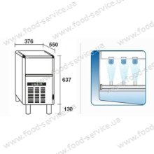 Лід використовується для напоїв та чудово подрібнюється в льодоподрібнювачі. Корпус виготовлений з нержавіючої сталі.   Продуктивність 55 кг/доба.  Об'єм бункера 15кг. Регулювання циклу виготовлення льоду 5-50хв. Цифровий дисплей. Подача води: підключення до ..