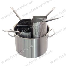 Якщо Вас зацікавила дана модель, телефонуйте за телефонами 383-12-60, (067) 500-43-27. Макароноварки ідеально підходить для приготування різних видів макаронних виробів одночасно (макарони, вермішель, локшина, спагеті, пельмені і вареники), а також гарнір. Особливість макароноварки полягає в тому, що в ній використовується спосіб швидкого приготування макаронів. особливості:   Матеріал виготовлення: нержавіюча сталь AISI 304 Зовнішня поверхня: полірована матова Потрійне дно типу "сендвіч". Багатоточкове кріплення ненагревающіеся зручних ручок, без заклепок, навколо яких збирається бруд. Сумісність з усіма видами плит, включаючи індукційні. Покриття: матове. ...