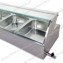 Виробник: GoodFood, Китай / Напруга, В: 220 / Потужність, кВт: 1.5 / Наявність гастроємностей: є в комплекті / Кількість гастроємностей: 4 / Вага, кг: 22.00 / Габаритні розміри (ДхШхВ), мм: 1175x350x315