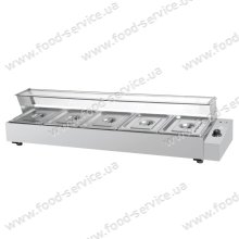 Виробник: GoodFood, Китай / Напруга, В: 220 / Потужність, кВт: 1.8 / Наявність гастроємностей: є в комплекті / Кількість гастроємностей: 5 / Вага, кг: 27.00 / Габаритні розміри (ДхШхВ), мм: 1445x350x315