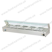 Виробник: Sybo, КНР / Напруга, В: 220 / Потужність, кВт: 1.8 / Наявність гастроємностей: опця / Кількість гастроємностей: 5 / Вага, кг: 26 / Габаритні розміри (ДхШхВ), мм: 1485x365x330
