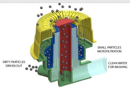 Ця система фільтрації складається із зовнішніх та внутрішніх секцій мікрофільтрації для великих і дрібних частинок бруду.