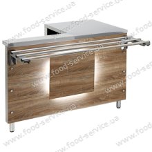 Місце касира Кий-В МК-П-1250 М Модерн праве використовується в складі лінії роздачі в їдальнях, бістро і кафе самообслуговування.