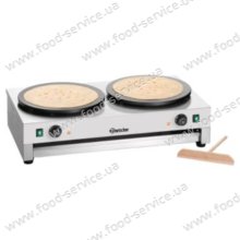 Виробник: Bartscher, Німеччина / Напруга, В: 220 / Потужність, кВт: 6 / Тип підключення: Електро / Кількість постів: два / Диаметр блинов, мм: 400 / Вага, кг: 40 / Габаритні розміри (ДхШхВ), мм: 860x510x245