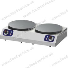 Стабільним попитом і великою популярністю у споживачів користуються млинці. Клієнтам можна запропонувати одночасно і відмінний бізнес-ланч, і солодку страву. Млинниця двопостова Frosty VP-2Y40 проста і зручна в роботі.   Ми пропонуємо одно- і двопостові моделі. · робочі поверхні виконані з чавуну із спеціальним покриттям, яке дозволяє смажити з мінімальною кількістю жиру; · терморегулятор дозволяє встановлювати температуру від 50 до 300 ° С; · корпус з нержавіючої сталі; · поверхня для смаження Ø 400 мм; · комплектуються дерев'яною паличкою для розподілу тіста по поверхні.