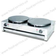 Корпус виготовлений з нержавіючої сталі.   Поверхня чавунна з антипригарним покриттям для смаження: Ø 400 мм + 400 мм. Товщина: δ=20 мм. 2 термостати. Температура 0°...300 °C. Піддон. Гумові ніжки. ...