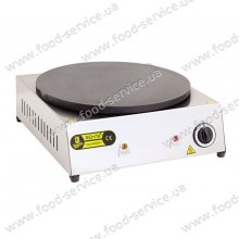 Млинниця електрична однопостова діаметром 40см має високі опори з можливістю регулювання.   Робоча поверхня виконана з чавуну з антипригарним покриттям, корпус з нержавіючої сталі.   Терморегулятор від 50 до 300°С. Потужність 3кВт. Напруга: 220В/50Гц. Габарит..