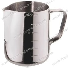 Молочник (джага) Berg 350 мл для бариста виконаний з нержавіючої сталі з полірованою поверхнею є гігієнічним та легко чиститься. Товсті стінки у пітчері гарно утримують температуру, а поверхня його повільно нагрівається, що дає змогу збивати молоко довго та отримати більшу пінку. Молочник з рельєфною шкалою та має тонкий носик.