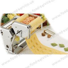 Насадка для макаронних виробів Ravioli - аксесуар для ручних тісторозкаток Atlas 150 мм та Atlas 150 Roller. З її допомогою можна приготувати італійські равіолі з начинкою. Розкатаний попередньо лист із тіста пропускають через пару валків, які формують равіолі. Ручка привода валів при цьому встановлюється в отвір насадки. Насадка виготовлена з якісної харчової нержавіючої сталі. Формуючі валки з харчового пластику. Привід валків металевий. За один оборот формується 3 вироби. ...