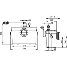 Виробник: SFA, Франція / Потужність, Вт: 400 / Продуктивність, л/хв: 70 / Відкачка по вертикалі, м: 5 / Відкачка по горизонталі, м: 100 / Підключення унітазу: є / Максимальна температура, °С: 35 / Підключення умивальника: нема / Підключення ванни: нема / Підключення пральної/посудомийної машини: нема / Підключення кондиціонера: нема / Підключення душа/біде: нема / Вага, кг: 5.00 / Габаритні розміри (ДхШхВ), мм: 420x166x268