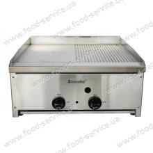 Технічні характеристики: Корпус і робоча поверхня виконані з нержавіючої сталі 18/10 AISI 304; Лоток для збору жиру; Вид поверхні: 1/2 гладка + 1/2 рифлена, сталь; Кількість зон нагріву 2; Температурний режим від 0 до 300 ° С.