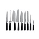 Ножі виконані з цільного шматка нержавіючої сталі 3CR13. Ручка з нержавіючої сталі 430 з прогумованим нековзним покриттям. Завдяки найвищій якості виконання ножі виключно міцні і корозійностійкі а лезо довго залишається гострим. Безпечна профільована рукоятка. У наборі: 1 - Ні..