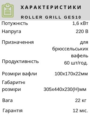 Професійна вафельниця Roller Grill GES 10 призначена для приготування свіжих вафель, також може використовуватися для розігріву заморожених, попередньо спечених вафель.