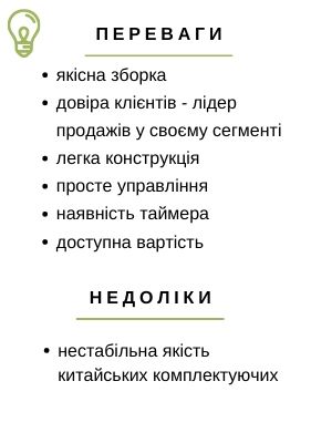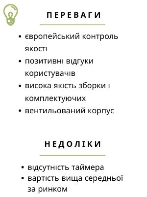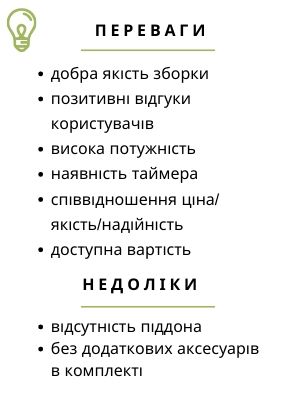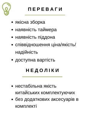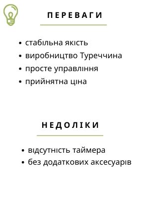 Наявність таймера оптимізує роботу з апаратом.