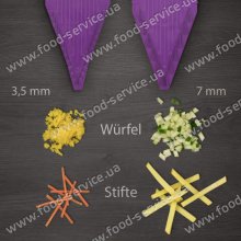 Вставка з ножами 3,5 мм. У двох положеннях робить соломку, брусочки, кубики та ін. Завтовшки 3,5 * 3,5 мм в одному положенні і 3,5 * 1,8 мм у другій позиції.