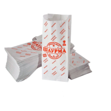 Пакет для шаурми білий з спец. паперу. Продається в ящику. Кількість в ящику - 1000шт. Вартість одного пакету - 0,51 грн. Завдяки виготовленню в певному розмірі і з нанесенням одного кольору, пакет універсальний для всіх закладів продажу подібної продукції. Бізнес фаст-фуду означає незначні витрати при високій віддачі, простота і зручность в експлуатації обладнання, мінімальні робочі площі і максимальна мобільність. Для будь-якого кафе чи ресторану обладнання для фаст-фуду може значно розширити асортимент страв, що готуються.